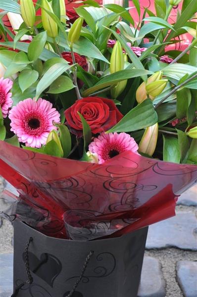 Beautiful Hand tied bouquet pre arranged in water, presented in a gift box for an instant display.