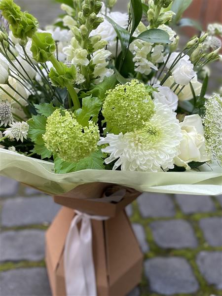 Beautiful Hand tied bouquet pre arranged in water, presented in a gift box for an instant display.