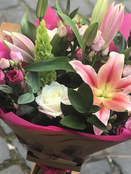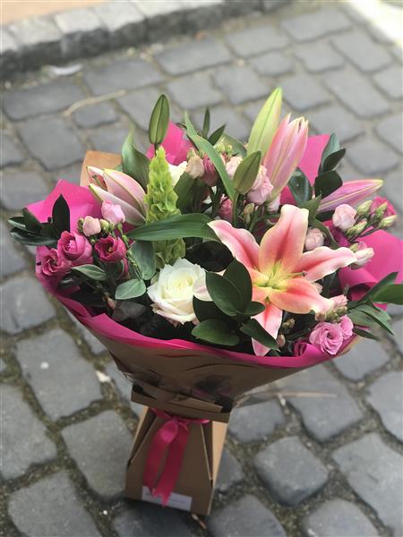 Beautiful Hand tied bouquet pre arranged in water, presented in a gift box for an instant display.