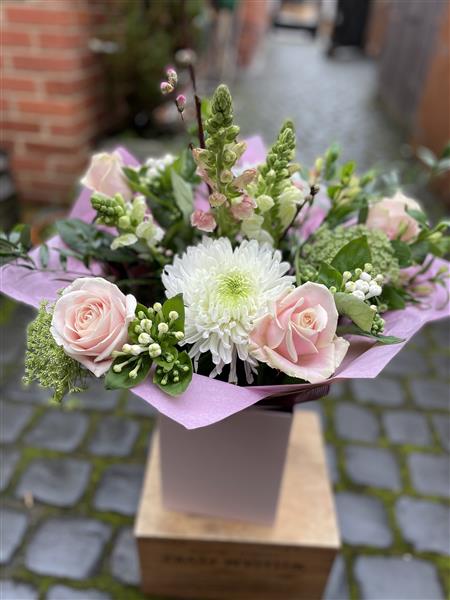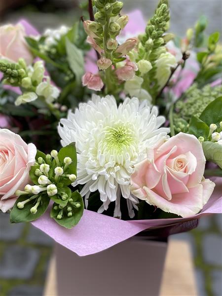 Beautiful Hand tied bouquet pre arranged in water, presented in a gift box for an instant display.